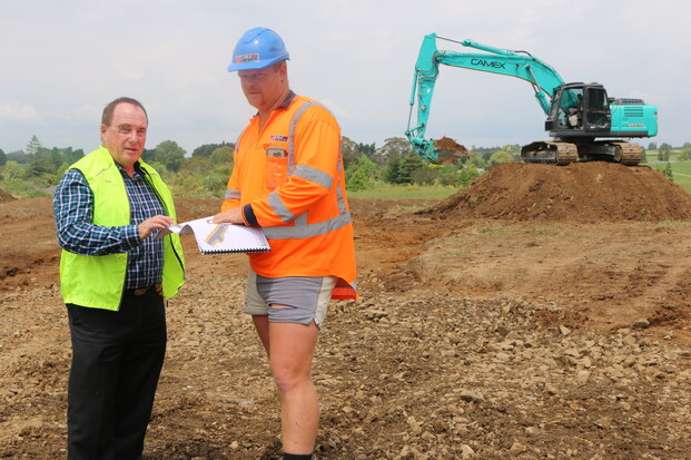 PICTURED ABOVE: Brian Alcock (left) and contractor Toby Nicholl from Camex Earthworks and Drainage