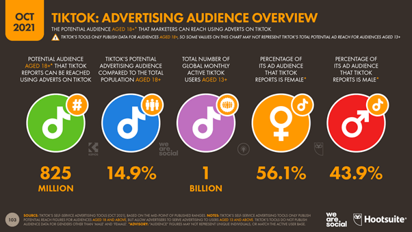 In September 2021, the company announced that it had 1 billion global monthly active users and claims that marketers can reach 824.5 million users aged 18 and above on the platform – even though the app is not available in China and banned in India two of the most populous countries in the world.